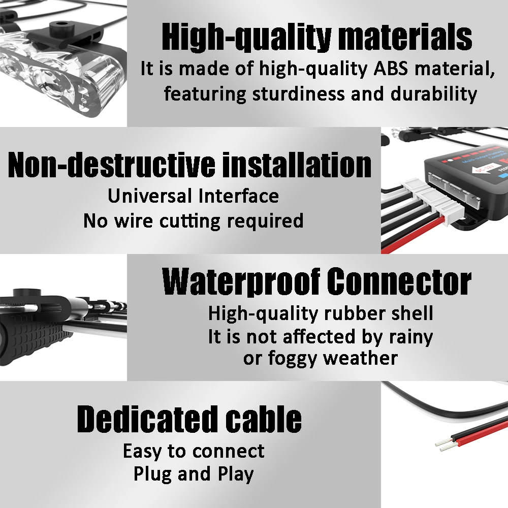 שלט רחוק אלחוטי: מאפשר החלפת מצבי הבהוב, הדלקה וכיבוי בנוחות מתוך הרכב או מחוצה לו, ללא צורך בחיווט מסובך לתא הנהג.