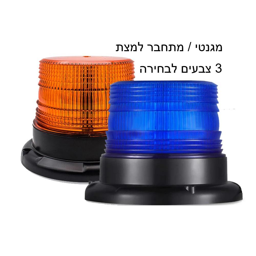 נורות אזהרה צ'קלקה מגנטית למשאיות 40 לדים 12V/24V מתחבר למצת הרכב, אדום, כחול וכתום, 7 מצבים