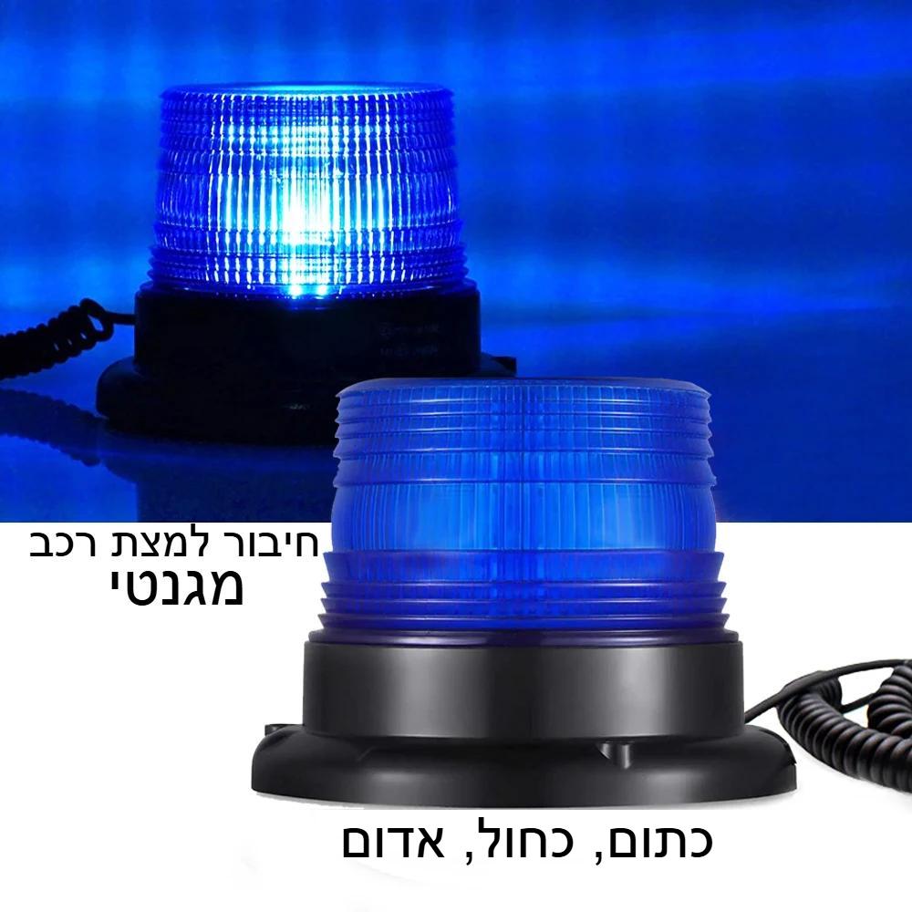 צ'קלקה לדים מגנטית מסתובבת LED Beacon עם 40 נורות 12V/24V ו-7 מצבי הבהוב בצבעים כתום אדום או כחול חיבור למצת