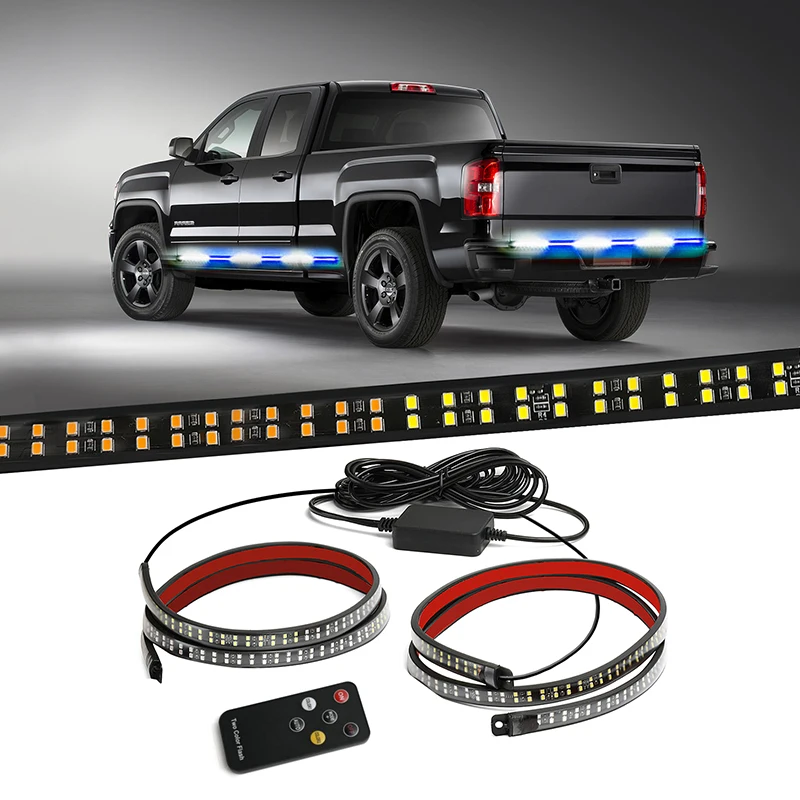 זוג בר לדים מהבהבים לשמשות פנים הרכב בצבע אדום לבן, 12V/24Vעם 26 מצבי הבהוב מתחבר למצת של הרכב + כפתור שליטה